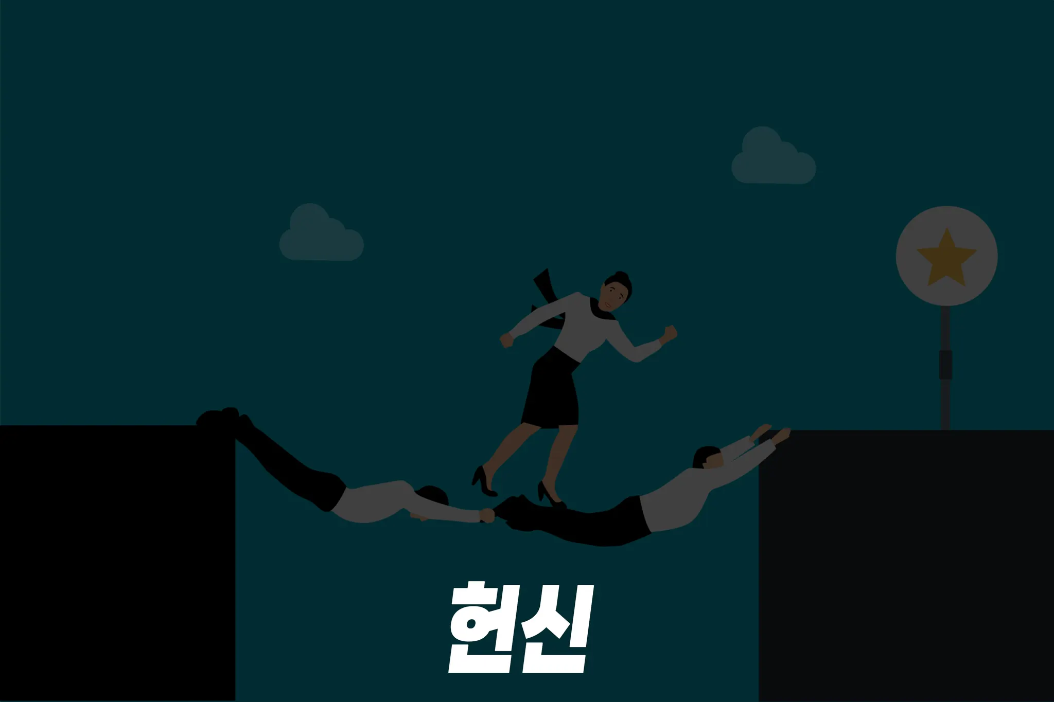 겸손함을 겸비하여 서로 생각과 능력을 하나로